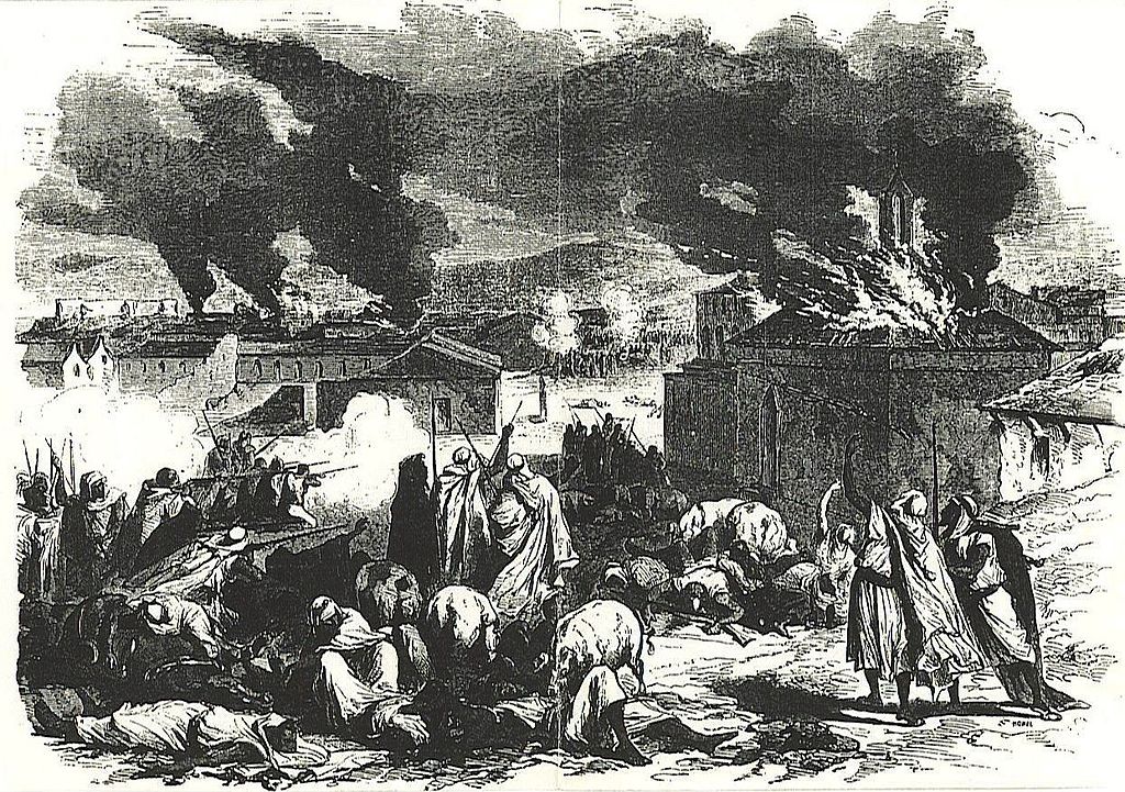 1024px-BorjBouArirrij-mokrani-revolte-1871Située à 1364 m d’altitude sur la chaîne montagneuse des Bibans, dans le plateau de l’actuelle localité Ighil Ali, à une centaine de kilomètres de Béjaïa, au Nord de Bordj Bou Arreridj, la Citadelle des Ath Abbès est la capitale d’un royaume dont l’influence s’étend de la vallée de la Soummam au Sahara, dès le début du 16e  siècle.