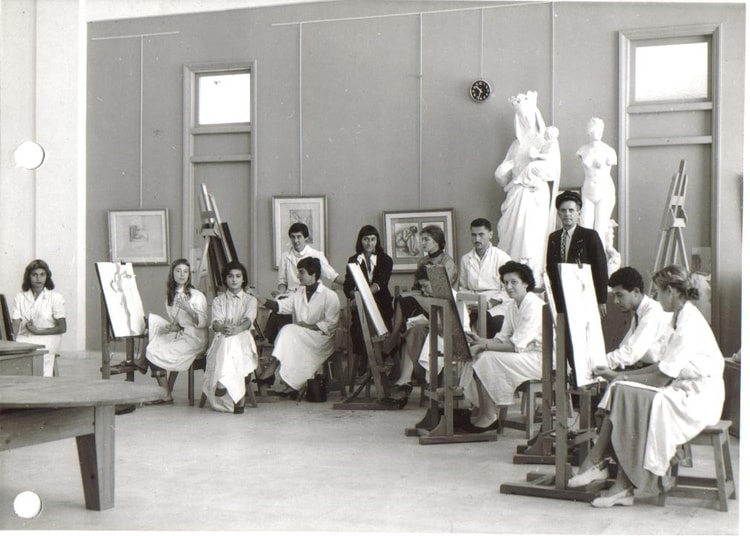 A 17 ans, Mohamed Khetib qui peint depuis plusieurs années, rencontre le fils du directeur de l’école des Beaux-arts d’Alger et réussit à s’y faire inscrire. Cette même année – 1940- il obtient le prix du concours de dessin que l’école organise. A cette époque, il assure son existence quotidienne, en dessinant des lettres pour les devantures des magasins.