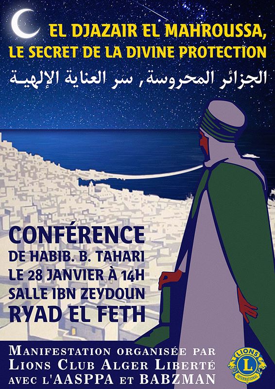 Cette conférence, intitulée : EL DJAZAIR EL MAHROUSSA, LE SECRET DE SA DIVINE PROTECTION, sera animée par Monsieur El Habib B. TAHARI , architecte et enseignant à l’EPAU.