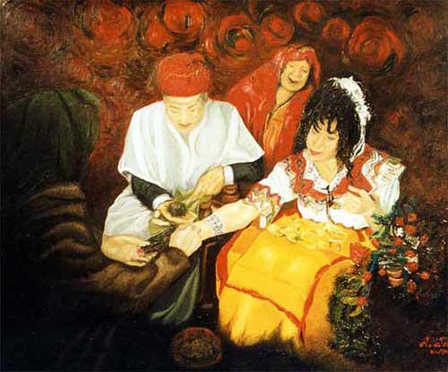 - « Le henné« , huile sur toile de Tahar Abdelkrim