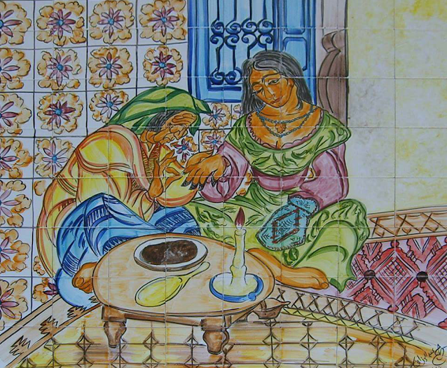 Selon Marie Vonderheyden, dans son livre Le Henné chez les musulmans de l’Afrique du Nord : «On rencontre à tout instant, parmi la population musulmane de l’Afrique du Nord, surtout au moment des fêtes, des femmes, des enfants, quelquefois aussi des hommes, dont les pieds, les mains, ou seulement quelques doigts, sont teints en rouge orangé ou brun. Cette coloration est obtenue par application, en emplâtres, d’une poudre que l’on tire des feuilles séchées du henné, arbrisseau originaire de l’Orient, et qui ressemble au troène. On connaît, par ailleurs, l’usage qu’en font les femmes pour teindre leurs cheveux. Il y a là une antique tradition de coquetterie qui n’offre pas, semble-t-il, un grand intérêt. L’intérêt grandit cependant, du point de vue sociologique, quand on apprend que l’emploi de cette substance était recommandé par le Prophète, que le henné est une plante bénie, que tous les musulmans, notamment les Maghrébins qui nous intéressent plus spécialement, considèrent la poudre du henné, la teinture, et l’arbuste lui-même avec un respect quasi religieux et qu’en dehors de la simple coquetterie le henné se prête à une foule d’usages où interviennent la tradition, la religion et la magie.»