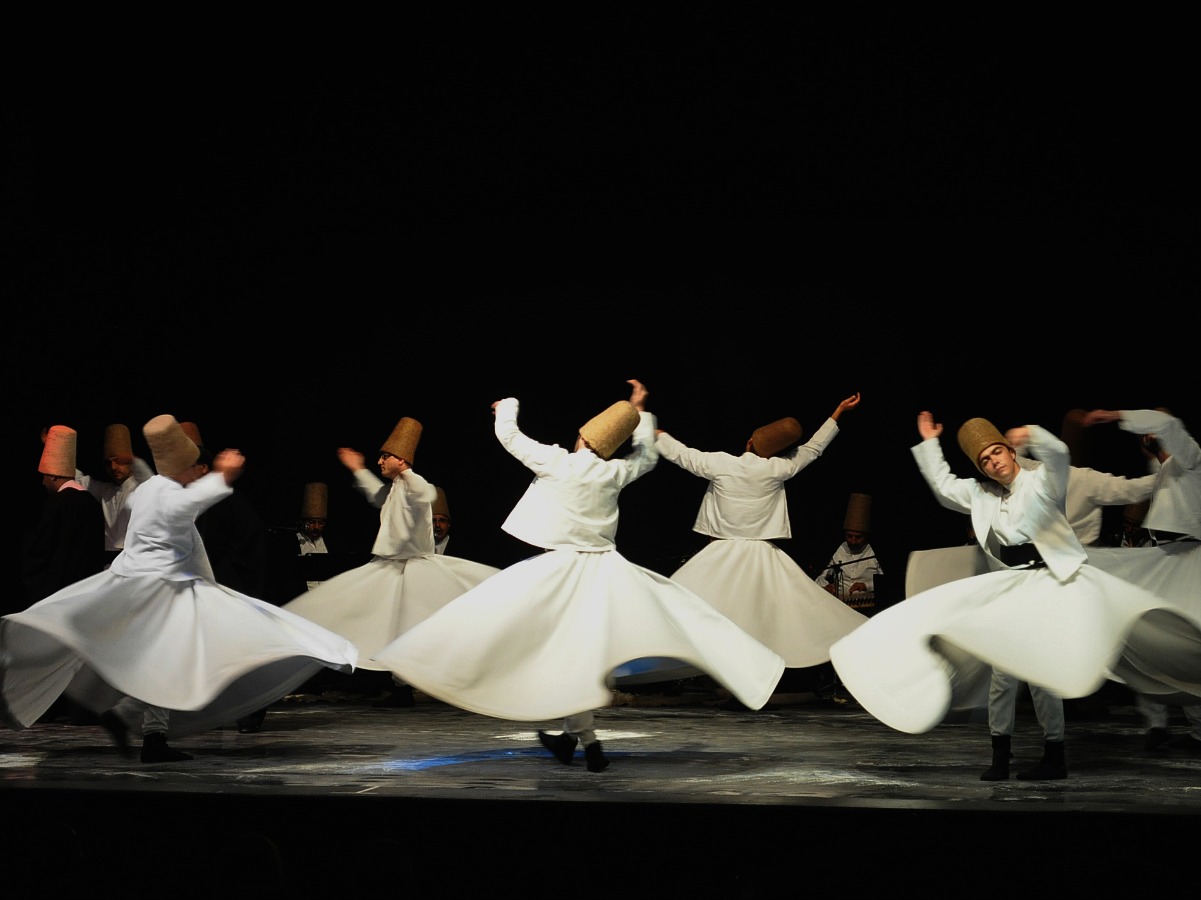 • Photographie : Démonstration de danse des derviches tourneurs au centre culturel de Sivas, en Turquie, https://www.geo.fr/