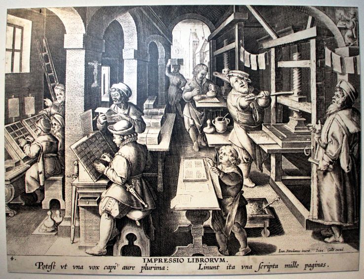 - Illustration : Atelier d’impression du XVIe siècle | Jan van der Straet via Wikimedia